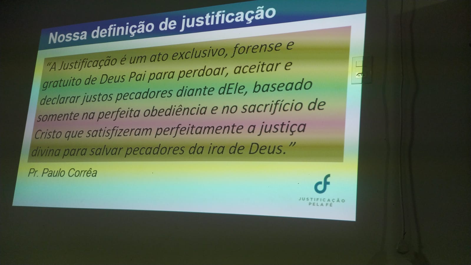 “A PREGAÇÃO DA JUSTIFICAÇÃO SOMENTE PELA FÉ EM JESUS CRISTO É IMPORTANTE PORQUE REVELA o verdadeiro evangelho, traz a PAZ COM DEUS que precisamos, LIBERTA-NOS dos nossos fardos, é fonte de ESPERANÇA INABALÁVEL e leva ao AVIVAMENTO ESPIRITUAL.” Pr. Paulo Corrêa